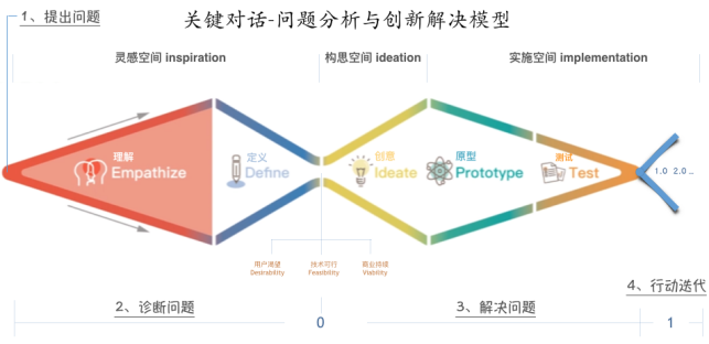 本套創(chuàng)新思維也是一組成套的工具和技術(shù),它能夠幫助組織創(chuàng)造同時滿足用戶需求性、 科技可行性和商業(yè)延續(xù)性的優(yōu)秀解決方案。創(chuàng)新開始于對內(nèi)外部用戶的深入了解,終于針對內(nèi)外部用戶的創(chuàng)新行動。這套工具可以快速產(chǎn)生并檢驗無數(shù)想法,并把它們轉(zhuǎn)化為偉大的解決方案。