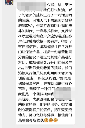 5、內(nèi)訓師:網(wǎng)點營銷動作定期檢查,電話營銷錄音的復盤點評指導,網(wǎng)點早夕會情景演練錄制視頻點評輔導。