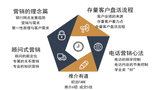 本課程讓我們從意識(shí)轉(zhuǎn)變、存量客戶經(jīng)營盤活、電話營銷、顧問式營銷、推介技巧等多方面、多維度助力一線營銷人員更好地做好客戶營銷。