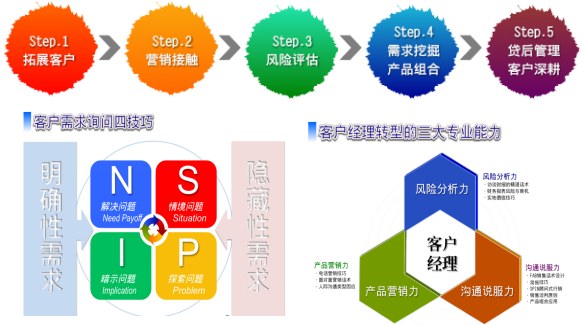 ? 再次拜訪客戶,事前需收集(研讀)企業(yè)信息,現場進行了解企業(yè)需求點、銀行同業(yè)的往來情況,以做出初步產品的規(guī)劃,與產品銷售話術的準備。