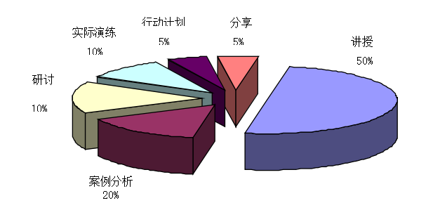 實(shí)際授課以分組式的互動(dòng)教學(xué),培訓(xùn)方式與時(shí)間的比例大體上如上圖所示,