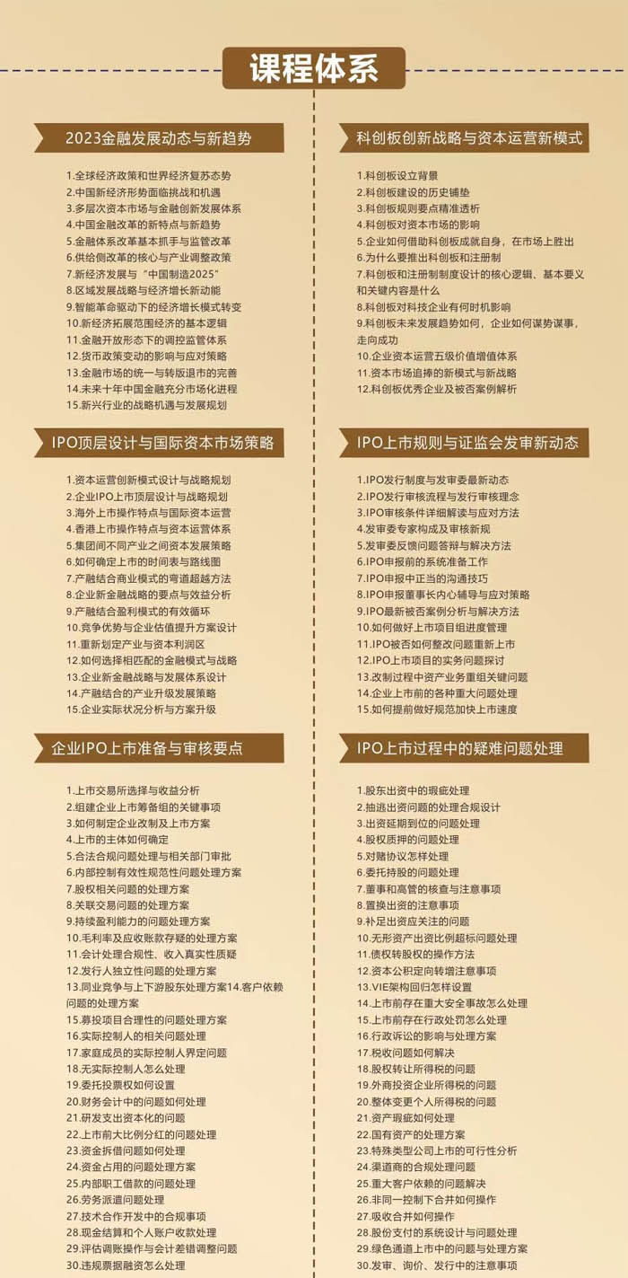IPO 常態(tài)化已成共識,拉動經(jīng)濟增長的核心是產(chǎn)業(yè)增長,推 動產(chǎn)業(yè)增長的核心是金融力量,未來幾年將是企業(yè)進入資本市場 的黃金窗口期!優(yōu)質(zhì)企業(yè)應(yīng)該盡早著手做好規(guī)范工作,規(guī)劃好經(jīng) 營業(yè)績,搭上資本市場發(fā)展的快車!中國社會科學(xué)院“新金融戰(zhàn) 略與企業(yè)上市并購”精讀計劃,從戰(zhàn)略高度開展科學(xué)、有效和合 規(guī)的系統(tǒng)性的新金融培訓(xùn),實現(xiàn)金融與實業(yè)的可持續(xù)增長,并運 用多種科學(xué)的價值經(jīng)營方法,打造新金融戰(zhàn)略第一品牌,幫助企 業(yè)達(dá)到企業(yè)價值創(chuàng)造最大化和最優(yōu)化的戰(zhàn)略目標(biāo)。