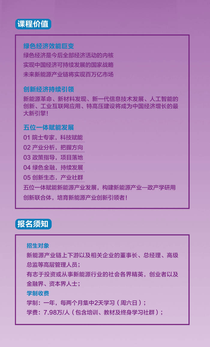 | 課程簡介: | 能源是全球經(jīng)濟(jì)社會發(fā)展的基礎(chǔ)和動力源泉。中國在雙碳戰(zhàn)略及高質(zhì)量發(fā)展大背景下,大力發(fā)展新能源是實(shí)現(xiàn)低碳轉(zhuǎn)型的必然要求,是實(shí)現(xiàn)經(jīng)濟(jì)安全可持續(xù)發(fā)展的國家戰(zhàn)略。根據(jù)中國能源稟賦特點(diǎn),必須大力推進(jìn)可再生能源為主體的第三次能源革命,必須高度重視新能源政策、技術(shù)、產(chǎn)業(yè)、市場要素協(xié)同推進(jìn),必須持續(xù)加強(qiáng)新能源科技創(chuàng)新和產(chǎn)業(yè)升級! | |