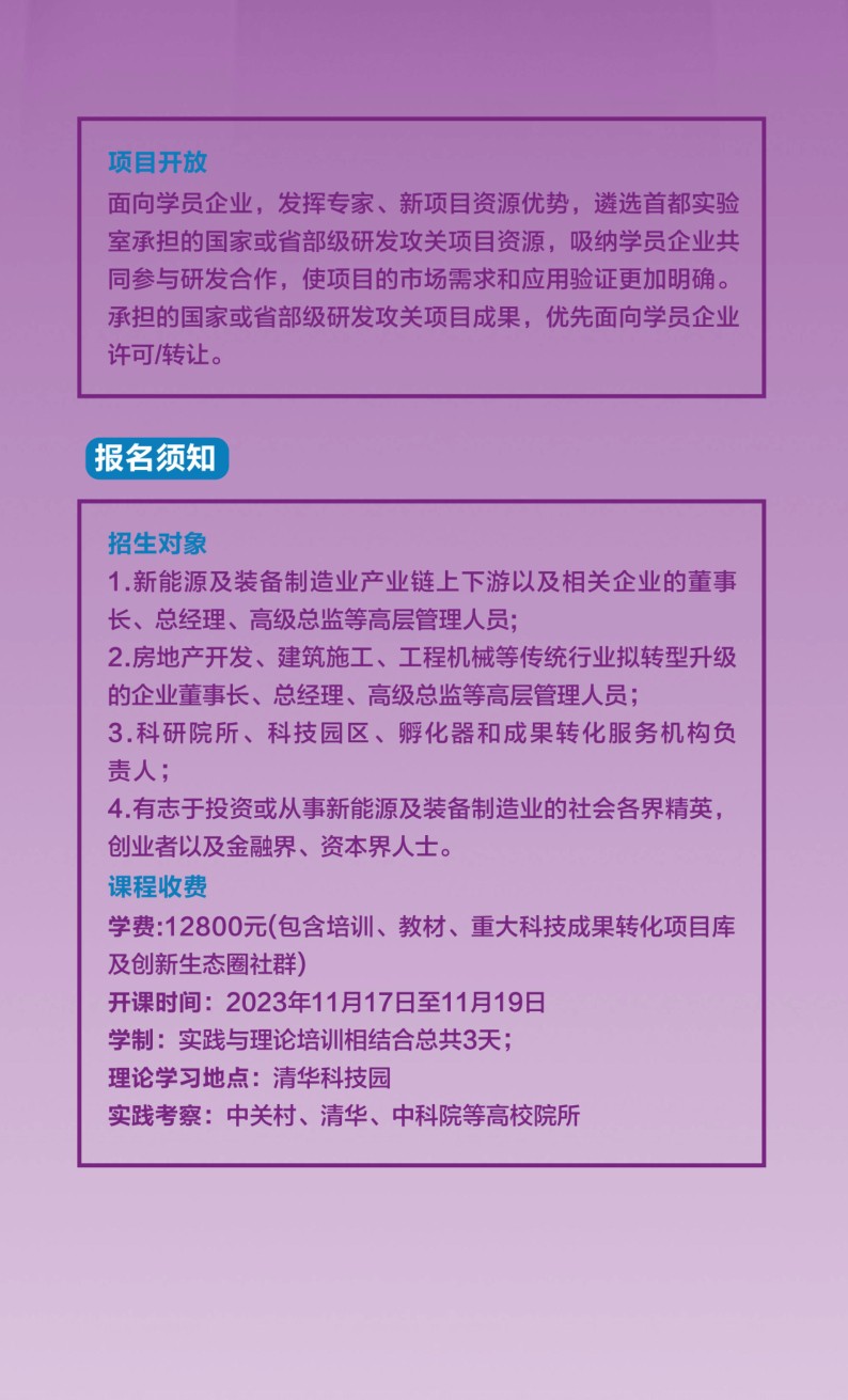 本期提供:60個學習名額(尋求轉(zhuǎn)型升級、成果轉(zhuǎn)化的企業(yè)家或機構投資人);