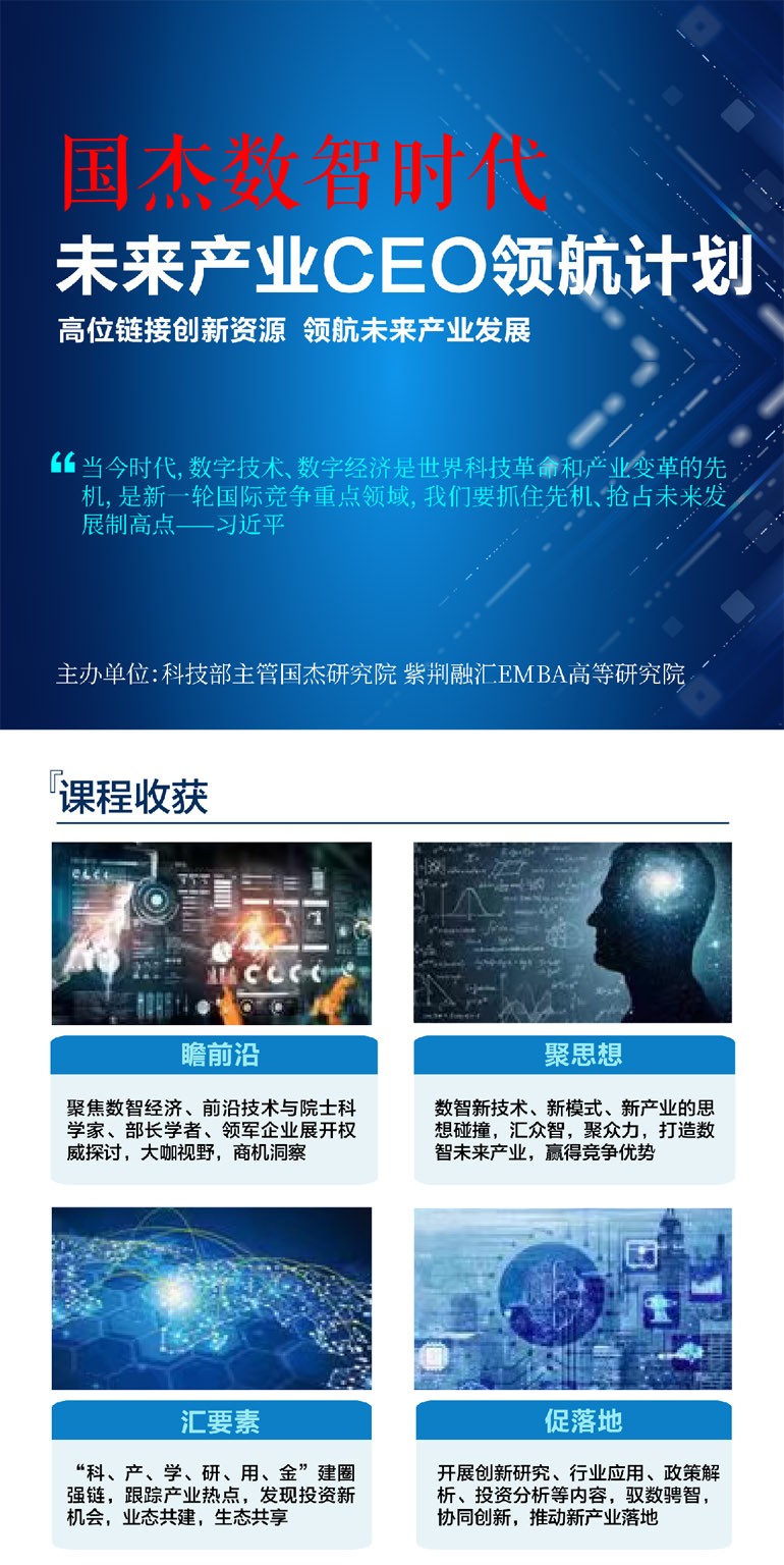 | 課程簡介: | 招生對象:科技領(lǐng)域企業(yè)創(chuàng)始人、核心高管;致力于數(shù)智化轉(zhuǎn)型的企業(yè)負(fù)責(zé)人;注重個人、企業(yè)創(chuàng)新成長的企業(yè)家;關(guān)注數(shù)字技術(shù)、AI先進(jìn)技術(shù),尋求投資機(jī)會的創(chuàng)業(yè)者;數(shù)字經(jīng)濟(jì)、人工智能領(lǐng)域的投資人等 | |