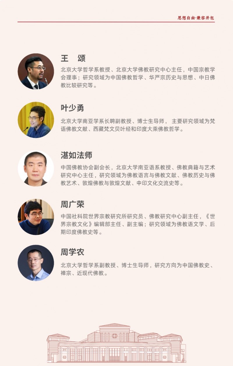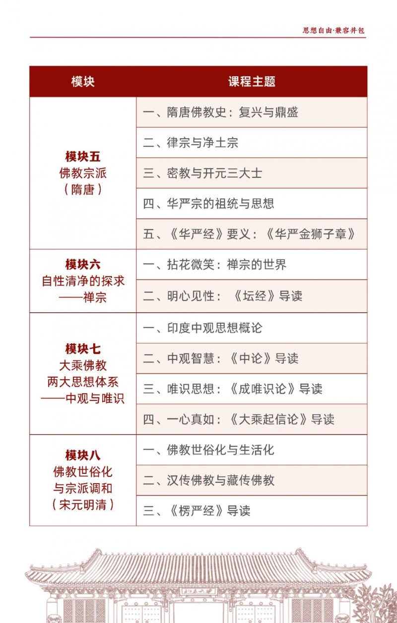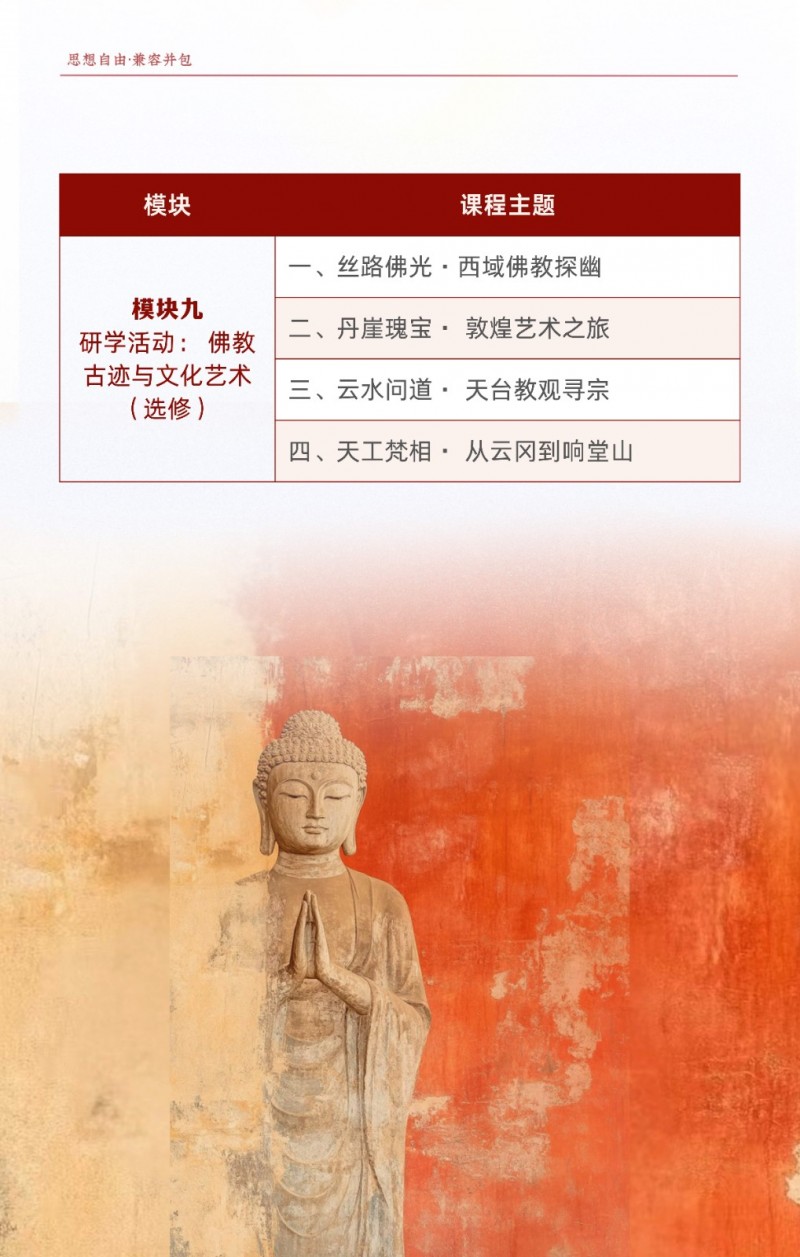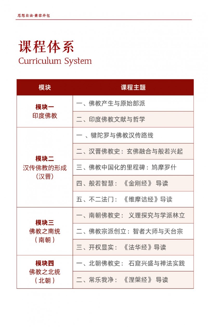 | 課程簡(jiǎn)介: | 北京大學(xué)佛教歷史與典籍研修班由北京大學(xué)歷史學(xué)系主辦,旨在系統(tǒng)梳理佛教從古印度起源到中國(guó)化的歷史脈絡(luò),深入解讀《般若經(jīng)》《法華經(jīng)》等核心典籍及天臺(tái)、華嚴(yán)等宗派思想?。課程為期一年,每月集中授課2-3天,由北大及國(guó)內(nèi)頂尖高校學(xué)者聯(lián)合授課,學(xué)員完成學(xué)業(yè)后可獲北大結(jié)業(yè)證書(shū)?。該研修班適合國(guó)學(xué)、佛學(xué)愛(ài)好者及社會(huì)精英,通過(guò)歷史與典籍的結(jié)合,幫助學(xué)員汲取佛學(xué)智慧應(yīng)對(duì)現(xiàn)代挑戰(zhàn)?。 | |