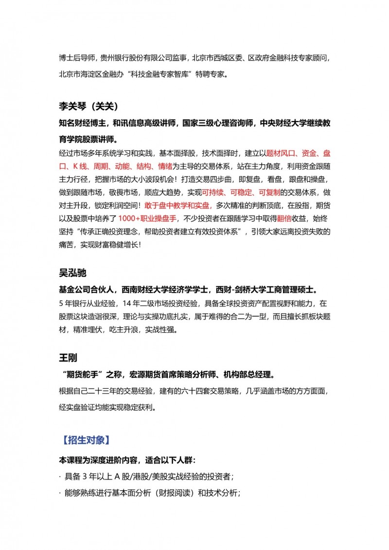 本課程面向所有希望在投資領(lǐng)域?qū)崿F(xiàn)突破的群體,具有廣泛的適應(yīng)性: