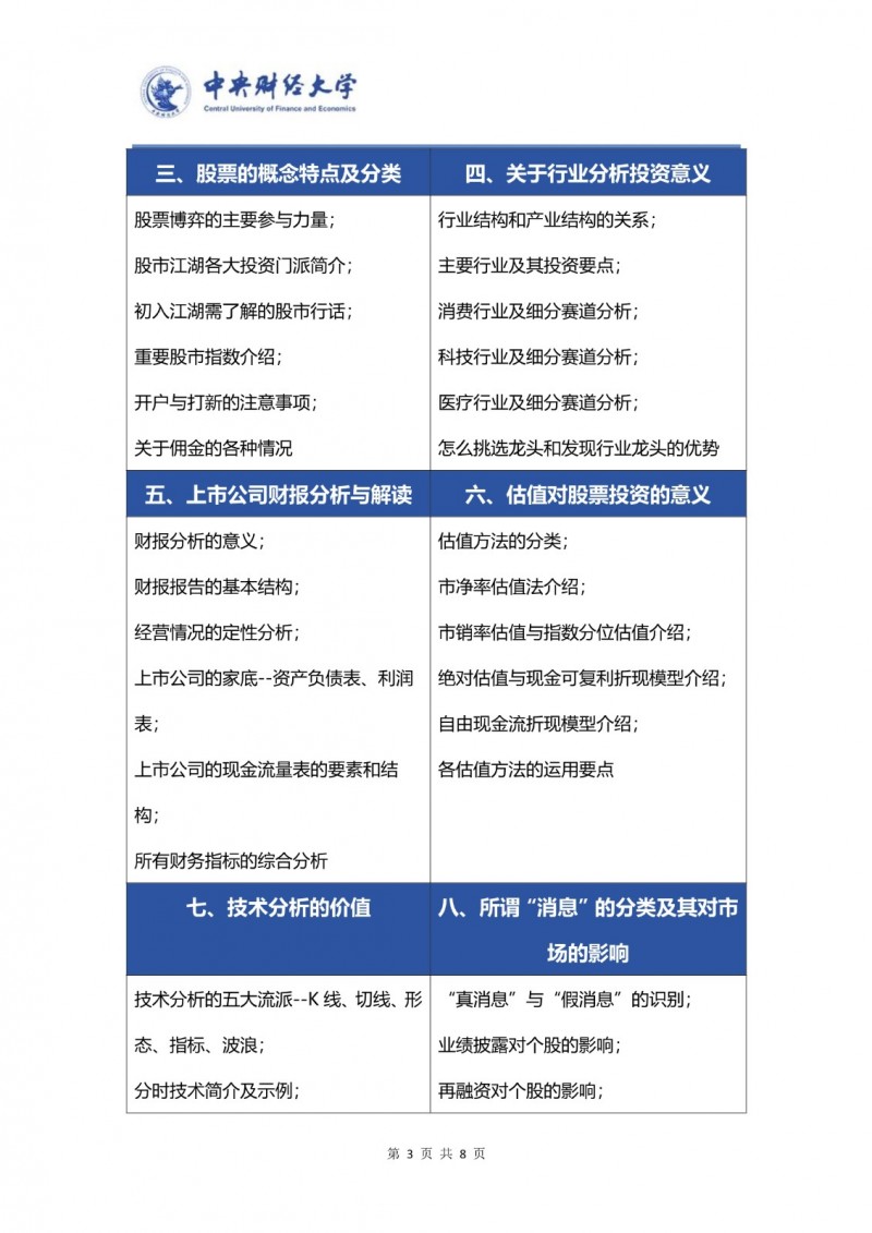 ?課程學(xué)制與安排?:學(xué)制通常為2個(gè)月,采用每月集中3天授課(課堂+沙龍)的模式,兼顧學(xué)習(xí)深度與時(shí)間靈活性。上課地點(diǎn)在中央財(cái)經(jīng)大學(xué)校區(qū),課程設(shè)有開(kāi)班人數(shù)要求(通常滿20人開(kāi)班),以確保教學(xué)互動(dòng)質(zhì)量。