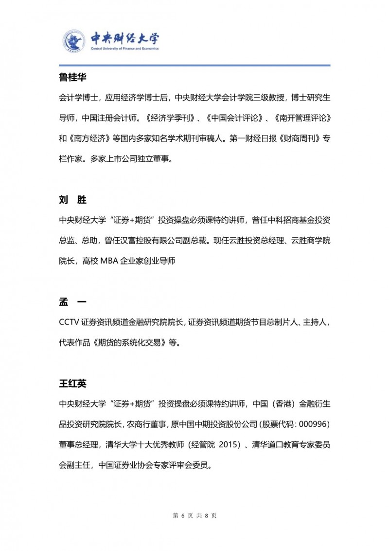 課程的師資力量體現(xiàn)了學(xué)術(shù)高度與市場(chǎng)深度的完美融合。授課團(tuán)隊(duì)由中央財(cái)經(jīng)大學(xué)的資深學(xué)者與具備一線豐富經(jīng)驗(yàn)的操盤(pán)手、投資專家共同組成。