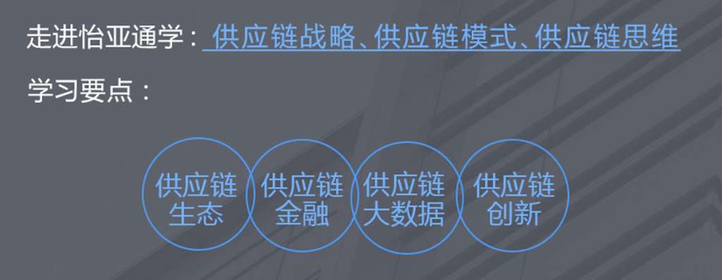 n 主題交流:怡亞通突破創(chuàng)新-解讀供應(yīng)鏈管理的創(chuàng)新商業(yè)模式(0.5 天) 1. 全球供應(yīng)鏈的發(fā)展趨勢分析 2. 中國供應(yīng)鏈行業(yè)的發(fā)展現(xiàn)狀及政策解讀 3. 供應(yīng)鏈作為企業(yè)核心競爭力分析及解構(gòu) 4. 怡亞通供應(yīng)鏈商業(yè)模式“生態(tài)圈”的創(chuàng)新實踐案例分享 |