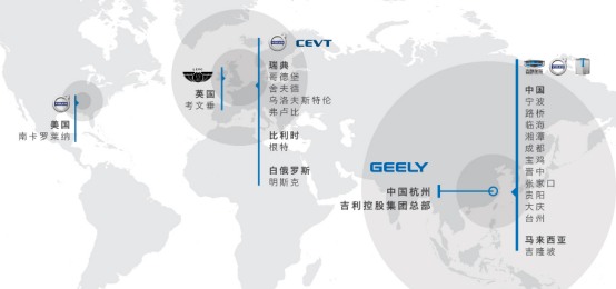 浙江吉利控股集團(tuán)旗下汽車企業(yè)在中國(guó)上海、杭州、寧波、瑞典哥德堡、英國(guó)考文垂、西班牙巴塞羅那、美國(guó)加州建有設(shè)計(jì)、研發(fā)中心,研發(fā)設(shè)計(jì)、工程技術(shù)人員超過2萬人,擁有大量發(fā)明創(chuàng)新專利,全部產(chǎn)品擁有完整知識(shí)產(chǎn)權(quán)。在中國(guó)、美國(guó)、英國(guó)、瑞典、比利時(shí)、白俄羅斯、馬來西亞建有世界一流的現(xiàn)代化整車工廠,產(chǎn)品銷售及服務(wù)網(wǎng)絡(luò)遍布世界各地。