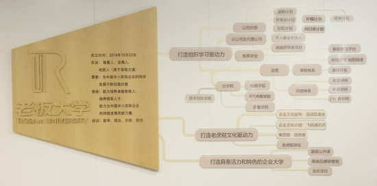 老板大學(xué)自2014年成立至今,一直將“培育卓越老板人,培養(yǎng)老板領(lǐng)軍人才”作為企業(yè)大學(xué)的使命,順應(yīng)當(dāng)前企業(yè)大學(xué)發(fā)展潮流,結(jié)合公司實(shí)際需要,致力于構(gòu)建學(xué)習(xí)型組織,打造企業(yè)核心競(jìng)爭(zhēng)力,建設(shè)可持續(xù)發(fā)展學(xué)習(xí)環(huán)境,培養(yǎng)具有競(jìng)爭(zhēng)優(yōu)勢(shì)的管理人才,助力企業(yè)的經(jīng)營(yíng)目標(biāo)和戰(zhàn)略發(fā)展,連續(xù)三年獲得“中國(guó)最佳企業(yè)大學(xué)”以及“中國(guó)企業(yè)大學(xué)50強(qiáng)”。